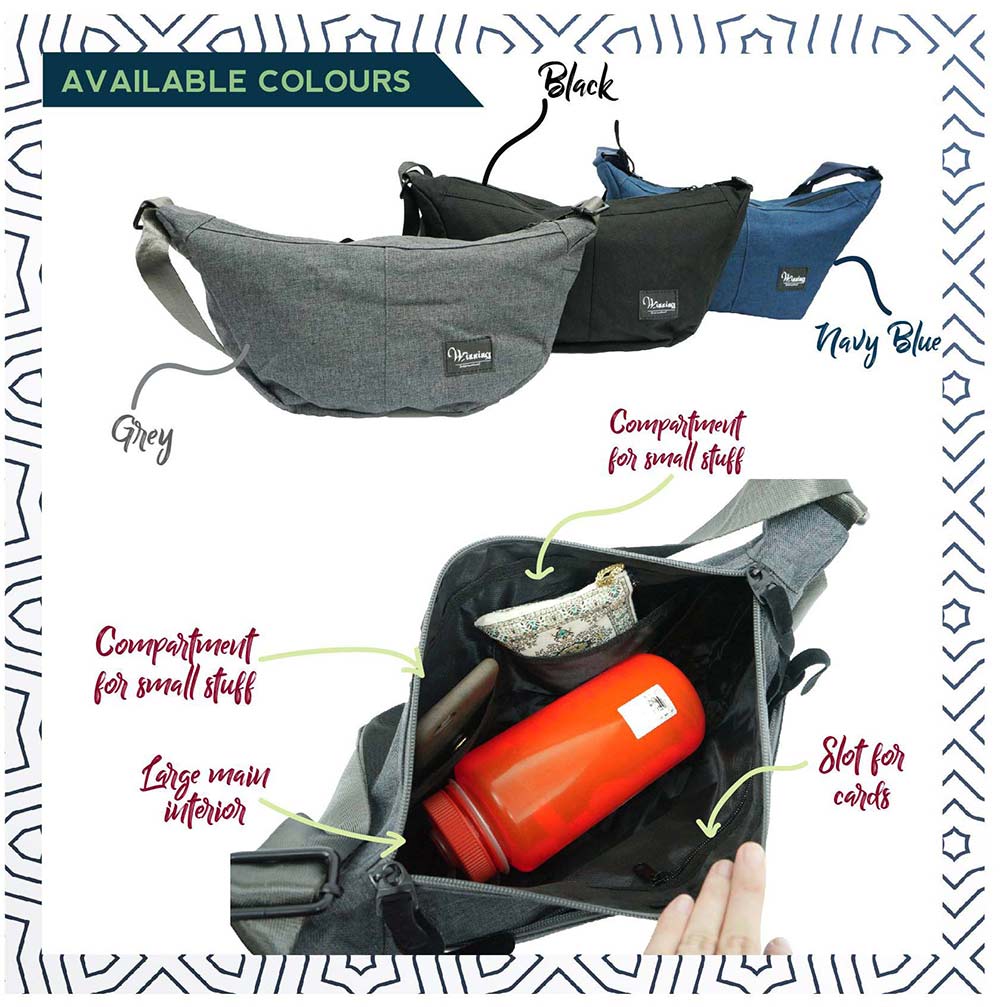 WINNING's Oliver Sling Bag is designed for everyday urban expeditions, be it work or play. Made of strengthened recycled canvas & nylon, it can hold up to 10kg of weight. The strap is artfully curated, with a blend of polyester and nylon to enable it to take much more beatings from everyday use. It has a main compartment, housing 3 other mini compartments inside.