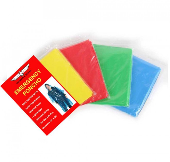 Raining and don't like carrying an umbrella around? Grab a packable size full cut poncho now made from polyethylene material. This Emergency Poncho is lightweight and compact. It can easily fit in your backpack, glove box, or even your pocket. This adult sized poncho has an attached hood. This is the perfect, inexpensive option for emergency weather protection.