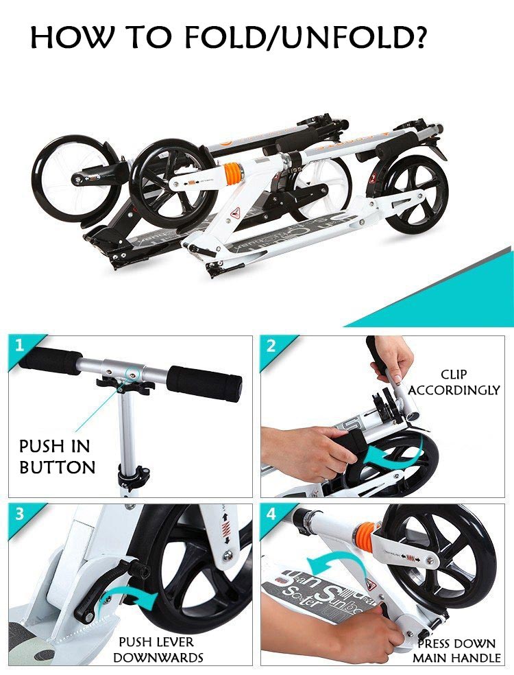 The Platinum Black is made of heavy-duty aluminium and thus ensures a long product life. Thanks to the quick-action folding mechanism, the scooter can be unfolded or refolded with just a few movements. Consequently, this little transport miracle is quickly ready for use, occupies little space when stowed away and can be taken with you everywhere you go.